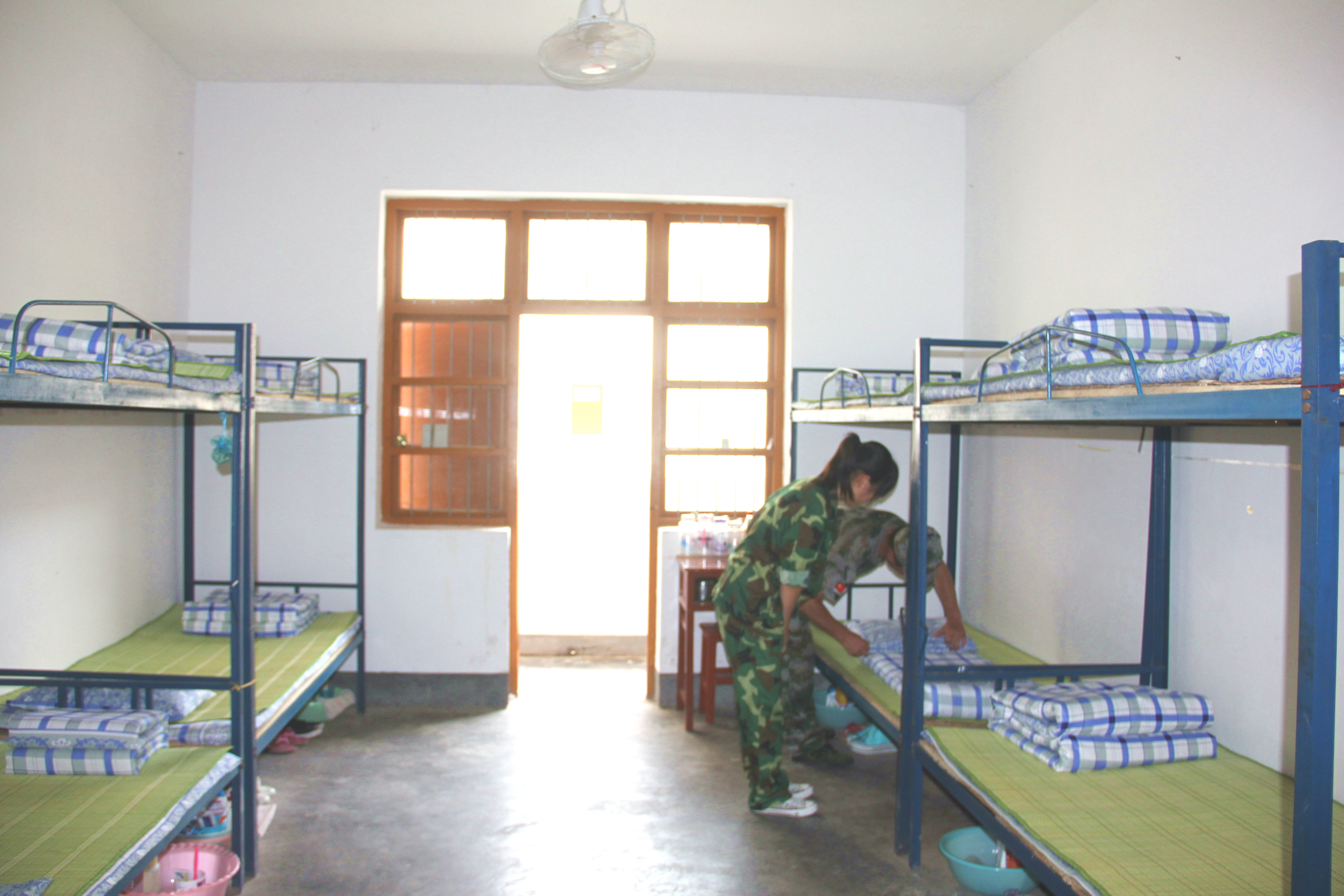 为了让2011秋季军训的同学尽快熟悉我校宿舍寝室管理规则制度进入军训状态。2011年8月25日军训教官组织了一场“内务训练”活动。同学们都有着极高的参与热情,个寝室都呈现出热火朝天的忙碌景象。