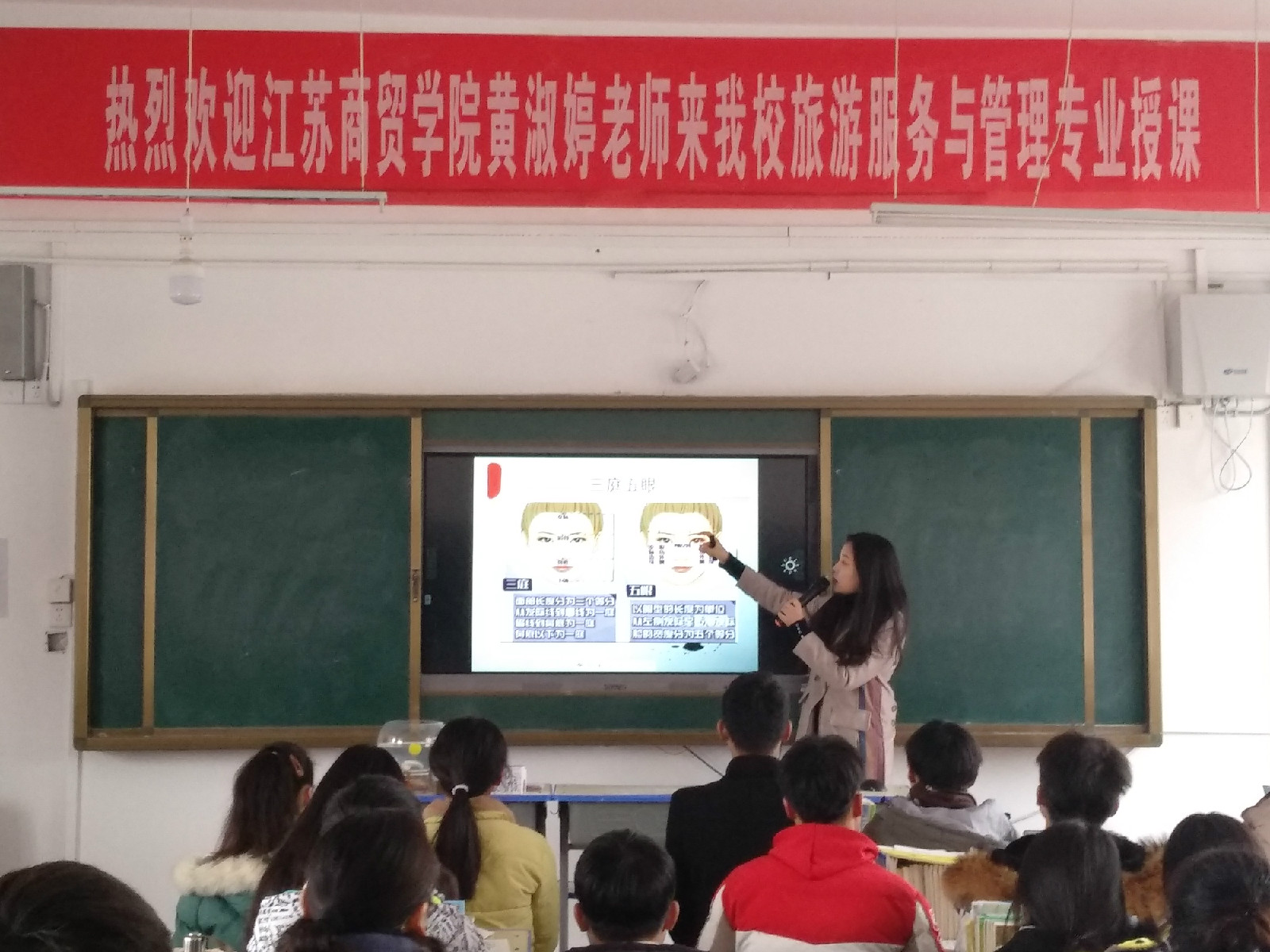 2019年11月29日,我校旅游专业聘请的江苏商贸学院高级礼仪培训师、高级化妆师黄淑婷来我校讲课。在19秋旅游教室,一些感兴趣的老师和19秋旅游班的同学···