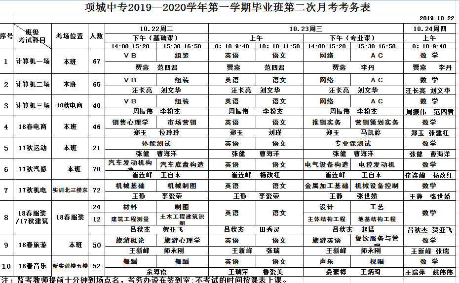 2019年10月15日——10月17日项城中专举行2019年下半期一二年级月考。