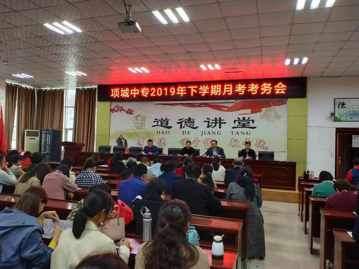 2019年10月14日下午,项城中专全体任课教师在五楼会议室召开月考考务会。教育教学无小事,细节之处见功夫。会上,张锦军副校长强调了本次月考监考情况···
