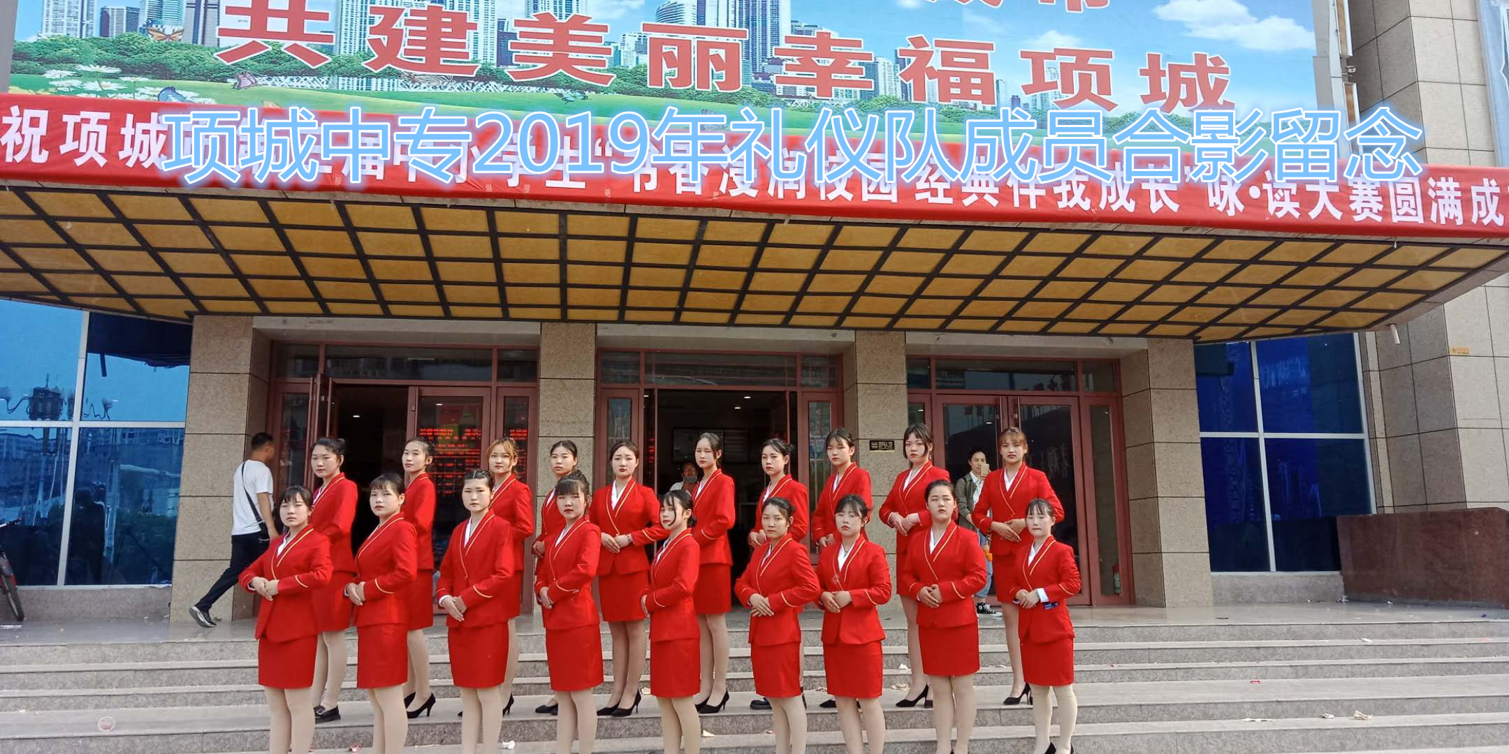 为庆祝项城市第三届中小学生“书香浸润校园 经典伴我成长”咏*读大赛圆满举行,项城中专礼仪队前往项城市人民大会堂参···
