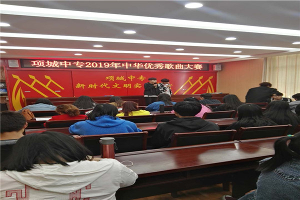 2019年4月16日上午,项城中专2019年中华优秀歌曲大赛在新实训楼五楼举行。