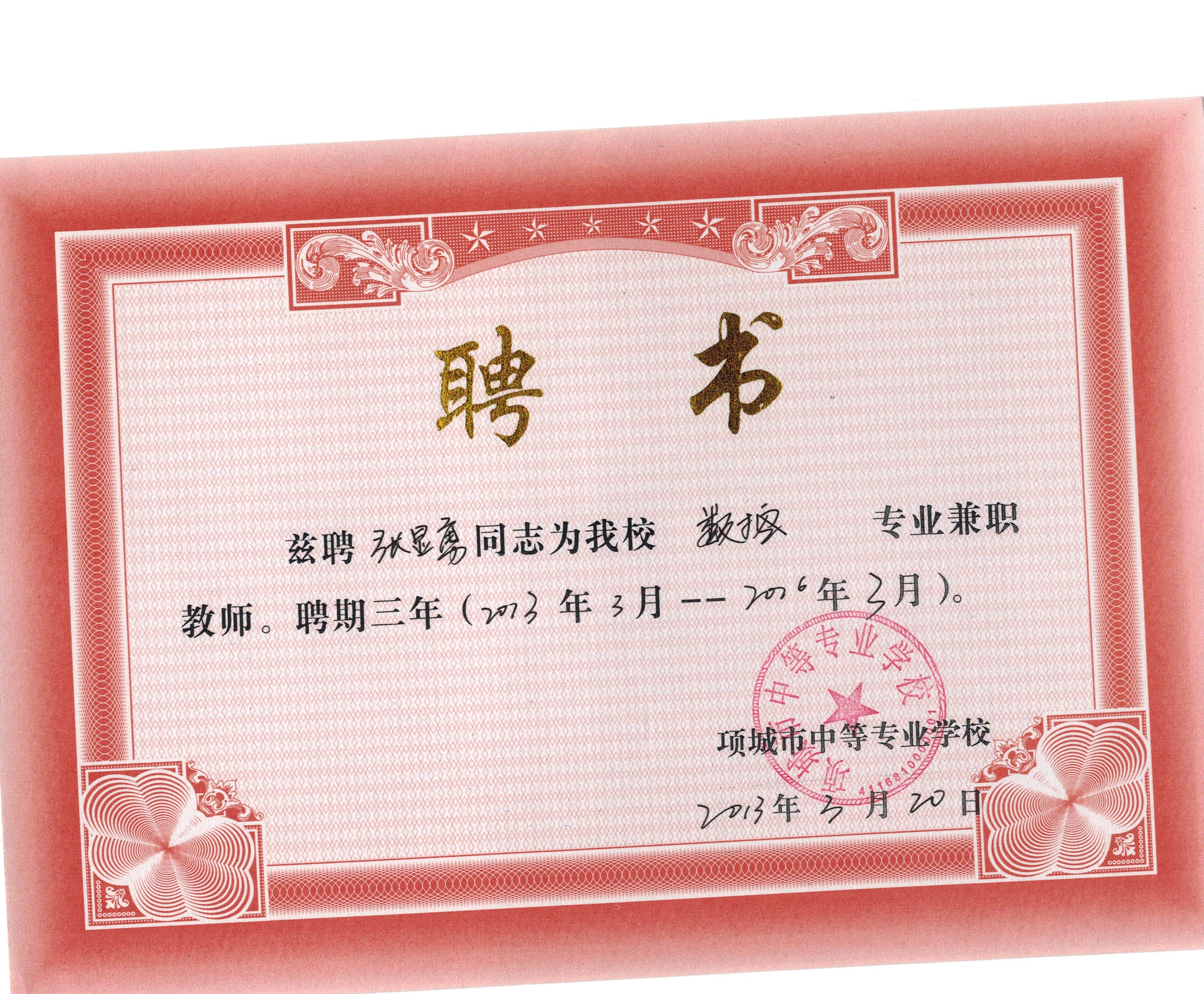 数控技术应用专业外聘教师证书及协议