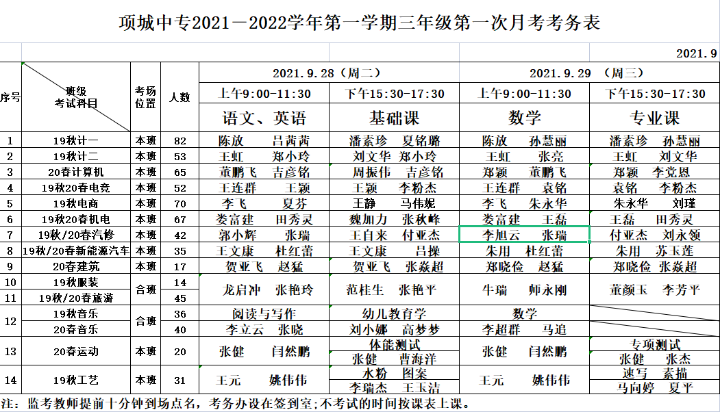 为了检验毕业班的老师、学生在这一个月来的收获与成果, 在教务处的组织下,2021年10月29日-30日,项城中专毕业班的第二次月考暨期中考试如期举行。本次···