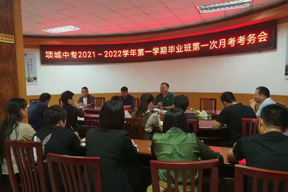 为进一步提高教学质量,做好月考的组织准备工作,保证月考工作高质量完成,9月27日上午,我校在办公楼二楼会议室召开了“项城中专2021——2022学年第···