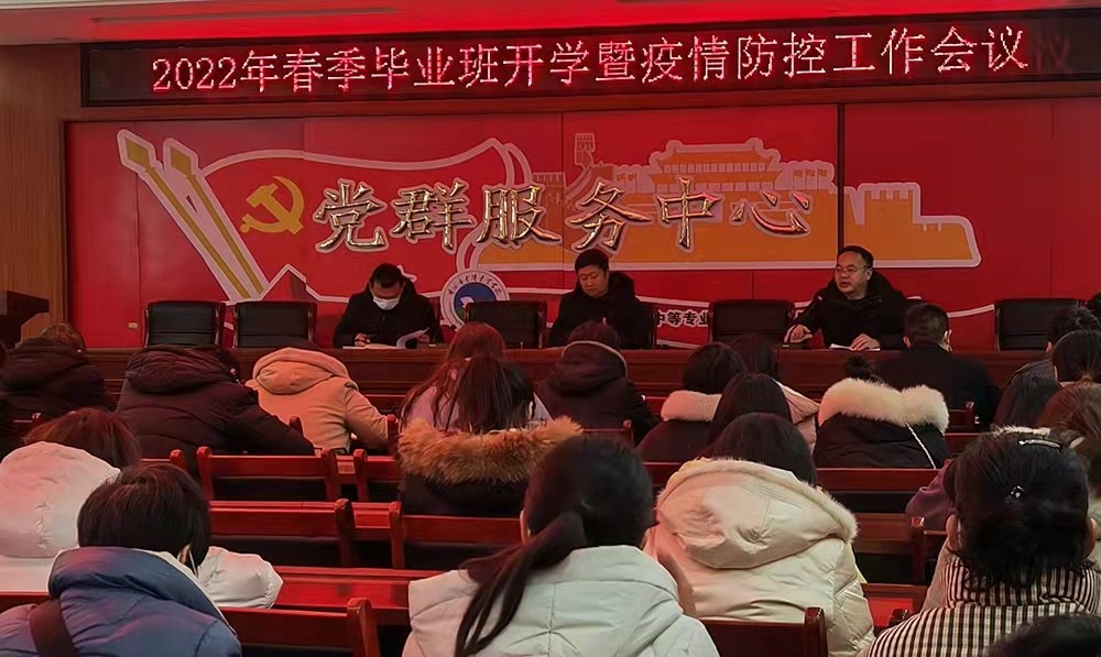 项城中专召开了2022年春季毕业班开学暨疫情防控工作会议。副校长张锦军,教务处主任师群力,教研主任李党恩及毕业班任课教师参加了本次会议。会议就2···