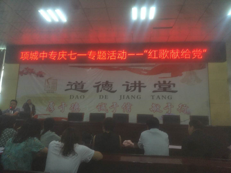 2019年6月19日晚自习在五楼会议室召开了“红歌献给党”练唱活动。全体教职工和校领导班子成员参加了此次活动。 虽然大···