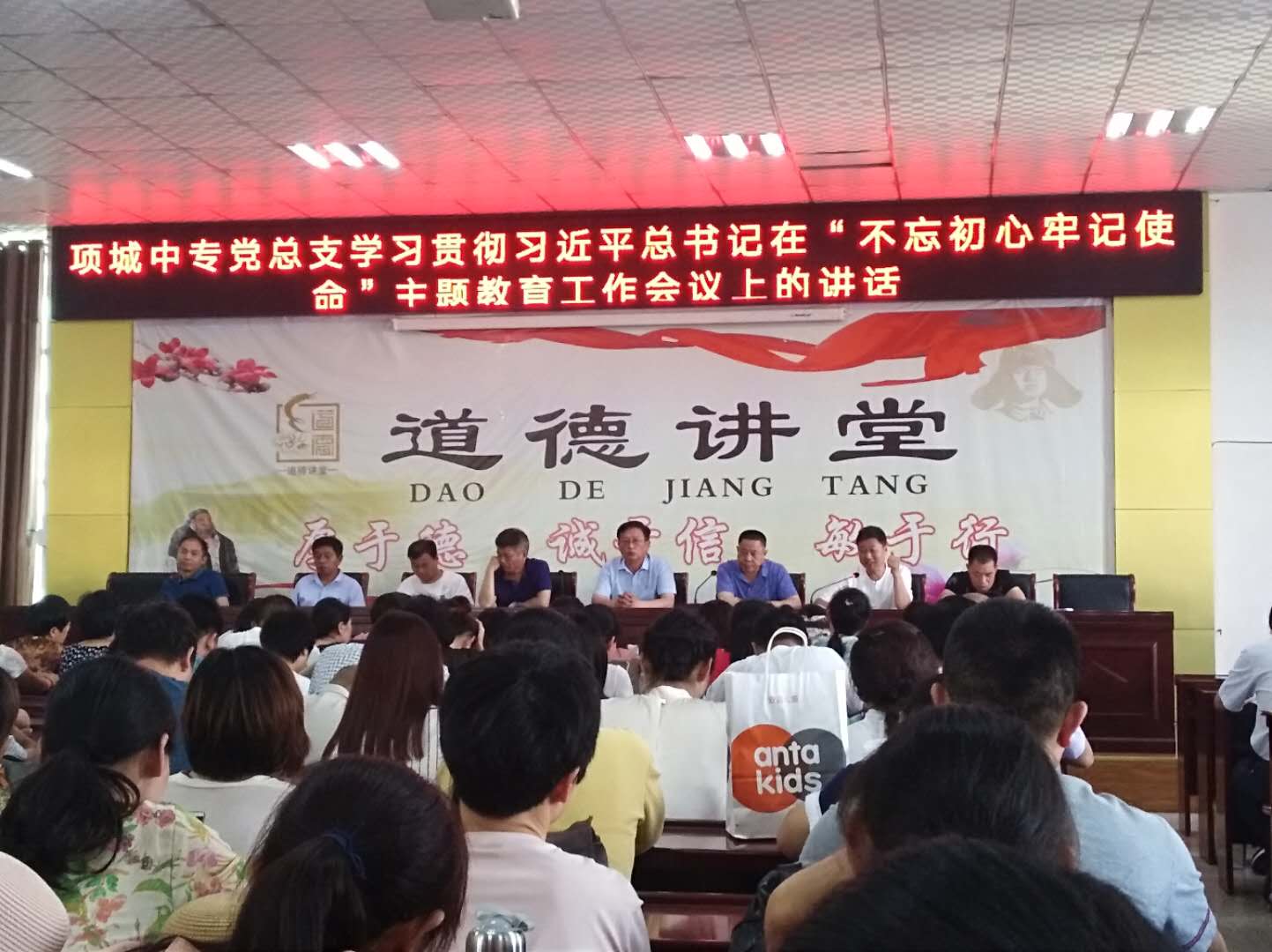 2019年6月2日下午3点项城中专全体教师在五楼会议室召开了项城中专党总支学习贯彻习近平总书记在“不忘初心牢记使命”主题教···