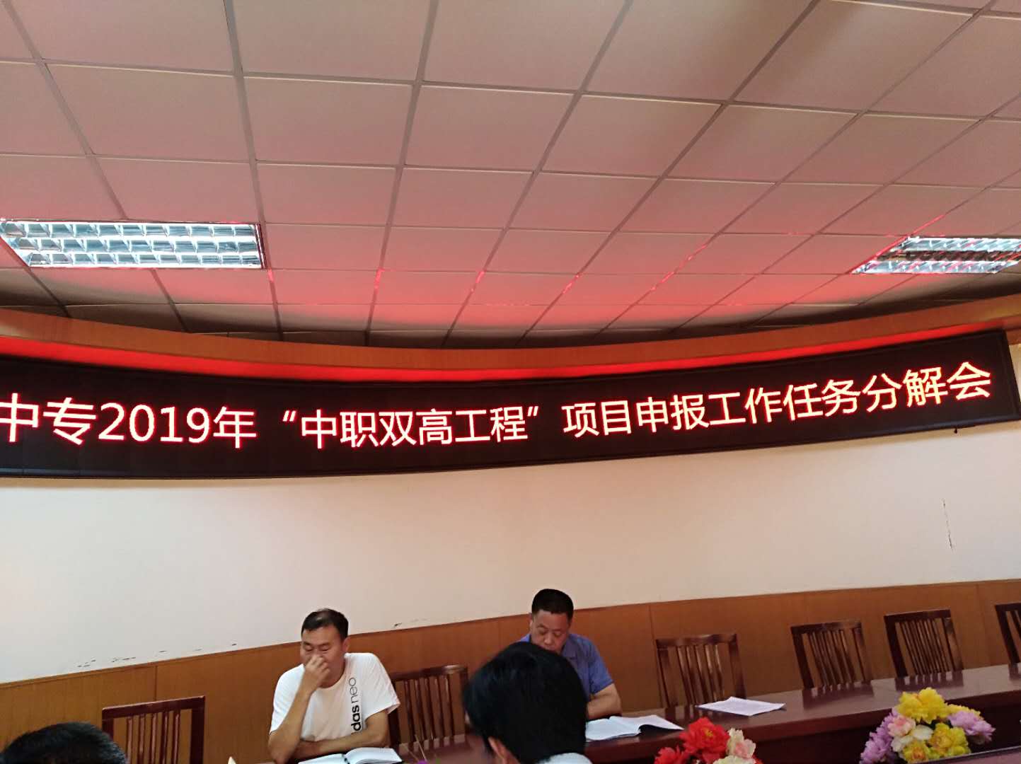 2019年6月9日下午,我校全体中层领导在二楼会议室召开了项城中专2019年“中职双高工程”项目申报工作任务分解会,会议由副校···