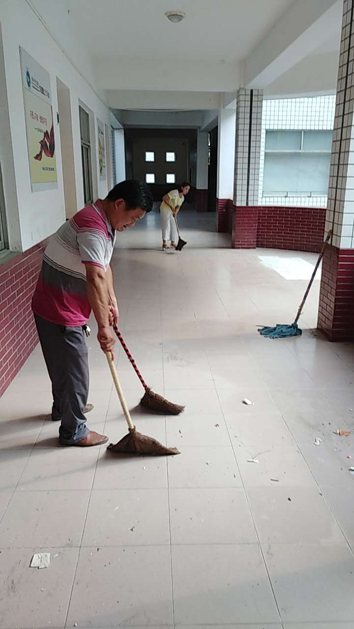 8月27日下午,我组教师为配合我校创建省级文明单位工作,塑造一个干净整洁的文明校园,拿起扫帚对我校教学楼及校园卫生进行了清扫。天···