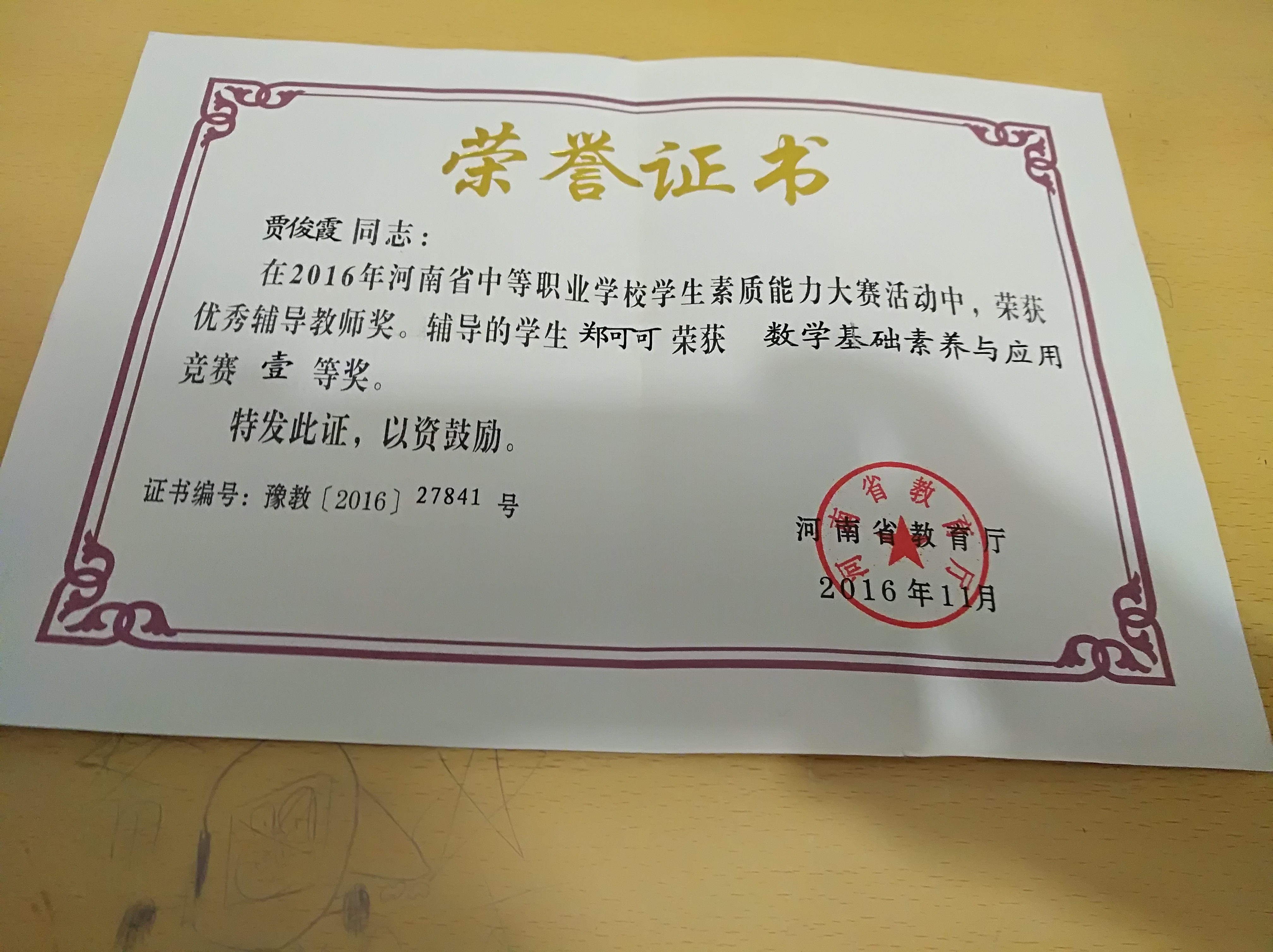 经过周口市的选拔,我组教师参加河南省数学素质能力大赛,贾俊霞,李珍祯老师带领两位同学郑可可.李欣欣.参赛,取得一个一等奖,一个三···