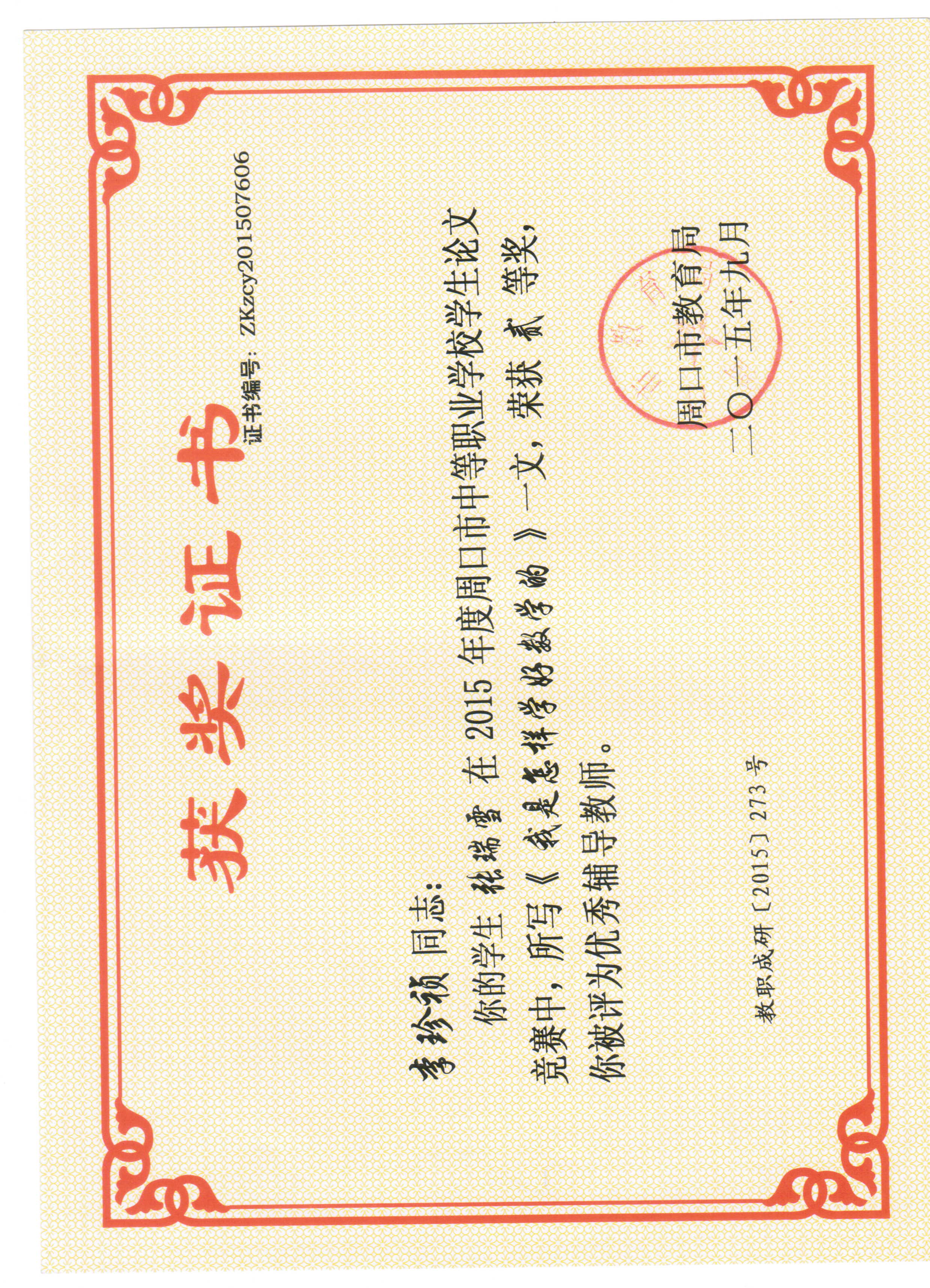 2015年8月,数学组教师李珍祯、姚伟伟和李旭云以团体形式代表我校前往郑州参加河南省中等专业学校信息化教学设计大赛,并取得优异成绩···