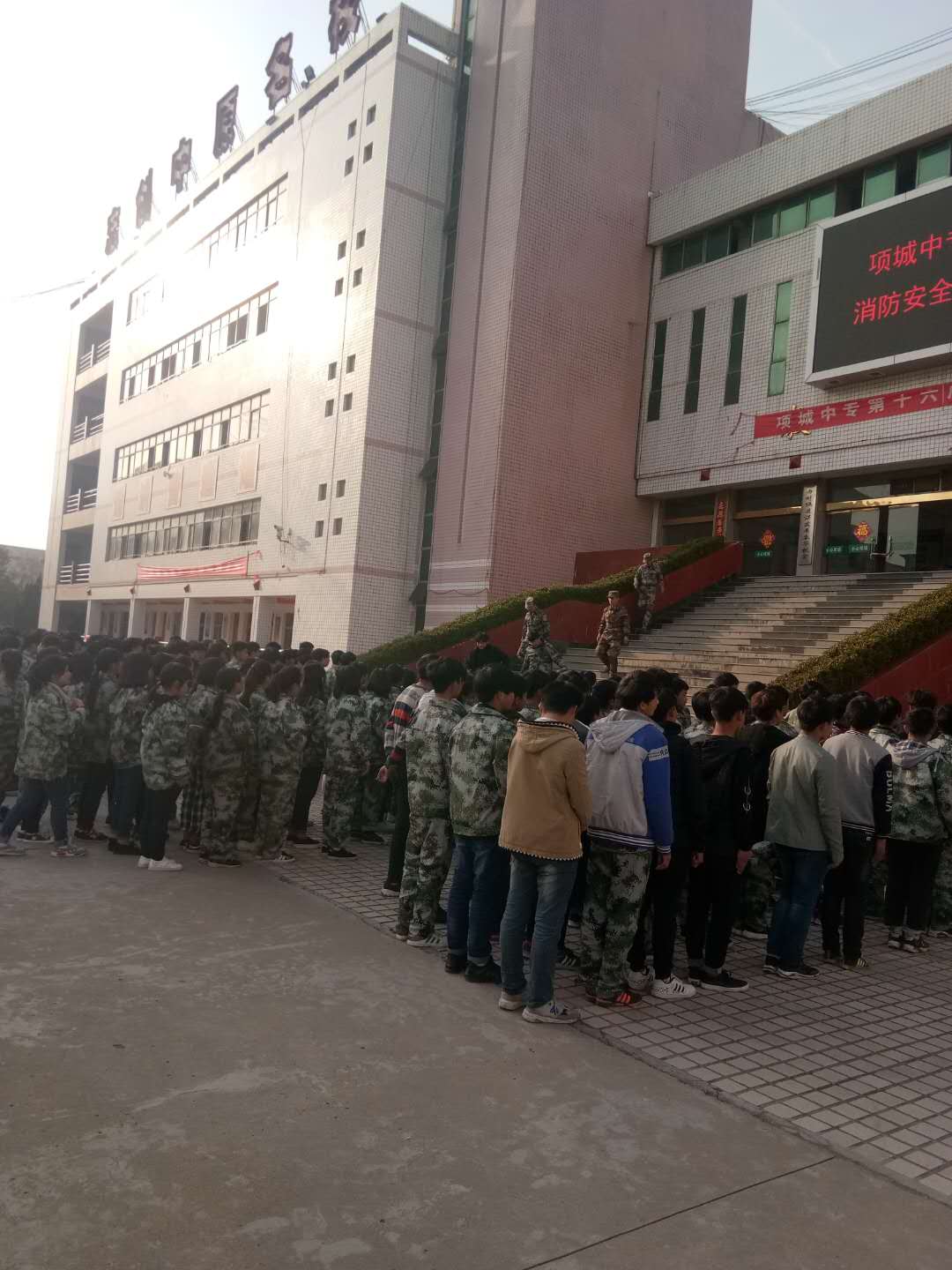 2018年3月10日下午,项城中专对军训新生进行了消防安全疏散演练。希望通过这次演练,能够使同学们掌握火灾发生时应采取的措施和方法。对学生进行安全教育,增强消防意识,使他们更好的了解防火制度和消防逃生路径,提高自救能力。
