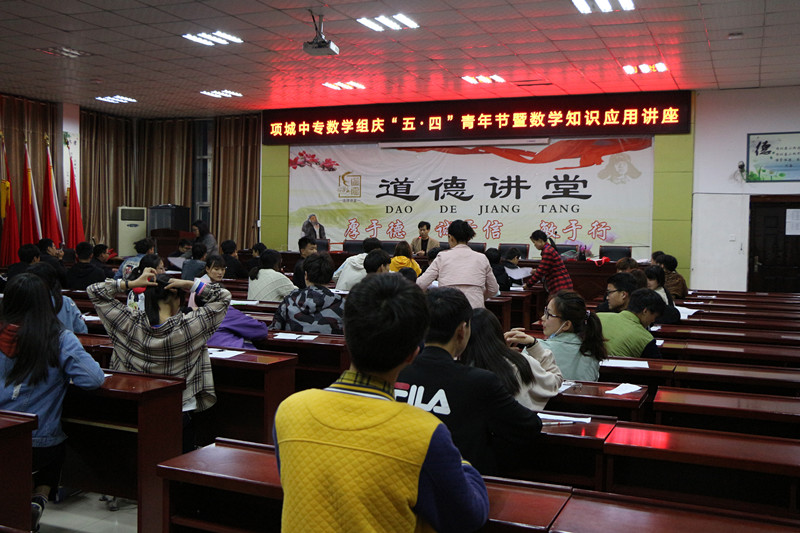 历史是连续的,从遥远的洪荒走到了咫尺的当下,影响着绵延不绝的未来。五四运动100年来,剥落的是时光,沉淀的是理念。为了传承五四精神,为我校学生指明新时代青年运动的方向和使命,激励广大共青团员和青年学生发扬伟大的五四精神,为奋力谱写实现中华民族伟大复兴梦的壮丽青春诗篇做出贡献,2019年4月28日晚在五楼会议室数学组进行了“项城中专数学组庆‘五•四’青年节暨数学知识应用讲座”。