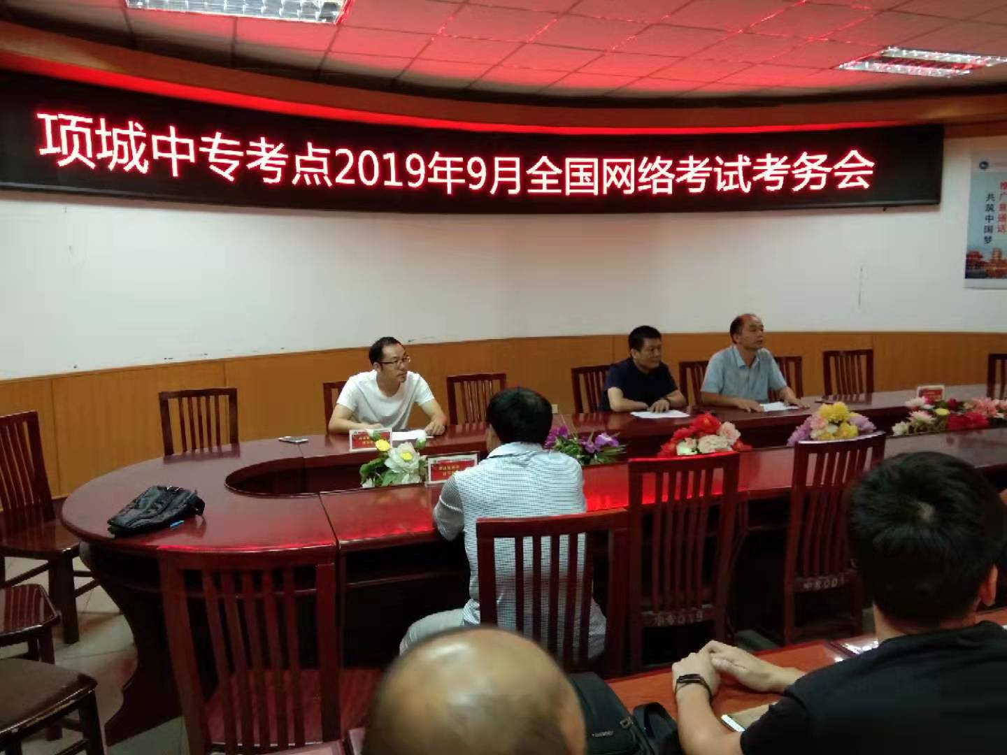 2019年9月5日下午,项城中专考点2019年9月全国网络考试考务会在项城中专办公楼二楼会议室召开,学校党总支书记马玉红同志、主管副校长陈···