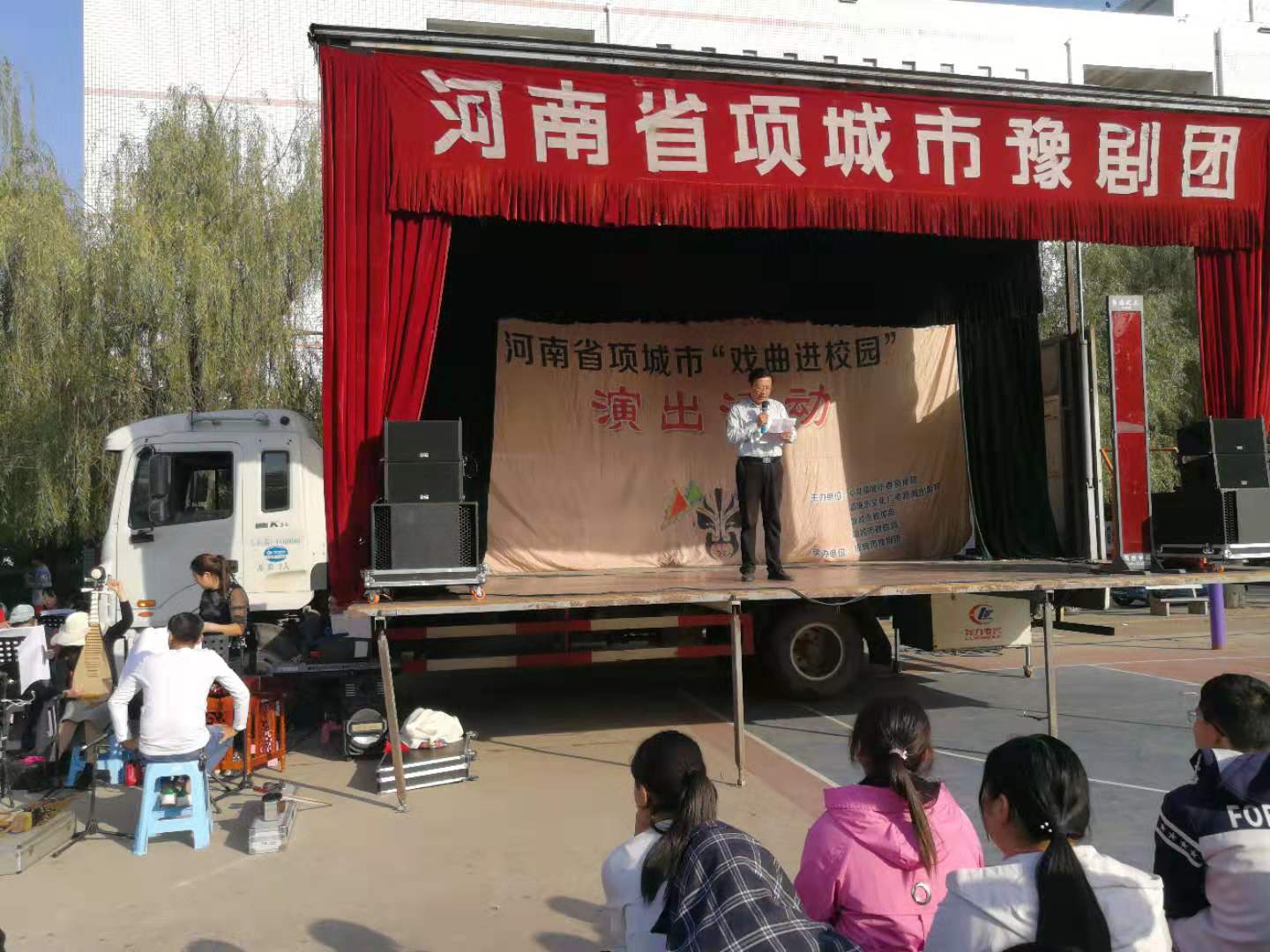 2019年10月30日下午,项城市社区学院戏曲进校园活动之项城中专专场演出在江南网页版操场举行,来自项城市豫剧团的豫剧演员们给全···