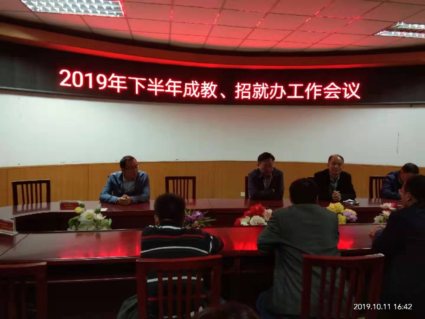 2019年10月11日下午,在学校办公楼二楼会议室,召开了2019年下半年成教招办工作会议。刘福亚校长、陈新峰副校长和全体成教、招办工作人员···