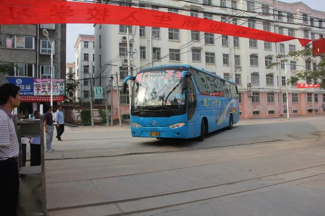 我校全体领导班子成员在校门口喜迎参加社会实践的学子返校。