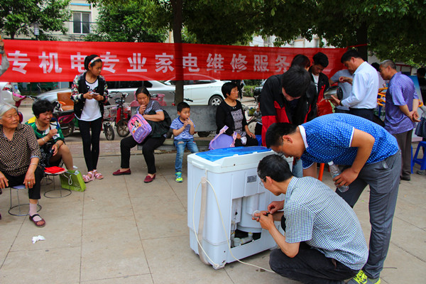 机电专业服务队正在为群众检修洗衣机