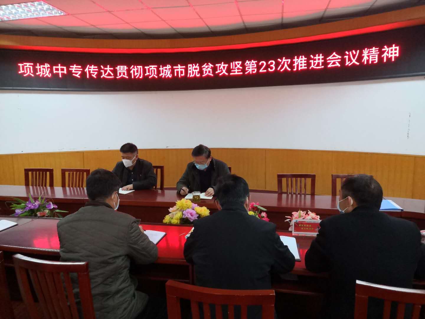 4月2日上午,项城中专全体班子成员在学校办公楼二楼会议室召开会议,认真学习贯彻项城市脱贫攻坚第23次推进会议精神。马玉红书记主持会议···