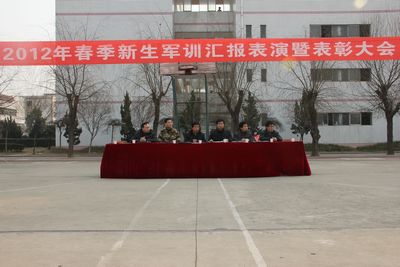 2月17日上午9:30,我校2012年春季新生军训汇报表演暨表彰大会在篮球场隆重举行。到会领导有主管政教、团委工作的副校长付高···