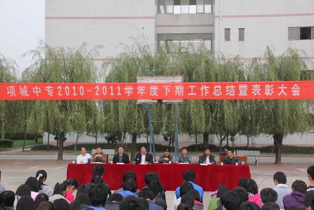 10月19日下午,项城中专在学校篮球场隆重举行2010—2011学年度下期总结表彰大会,全校两千多名师生全部参加。大会由学校副校长付···