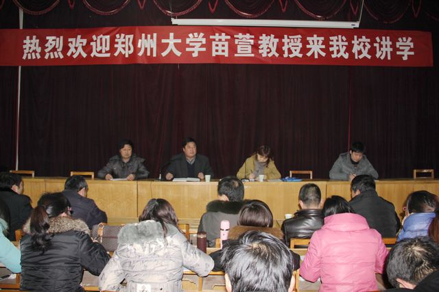 (通讯员龙启冲)2月13日,郑州大学苗萱教授被邀为我校教师作了一场关于“校本教材研发”的专题讲座。校长高必星、副校长潘···