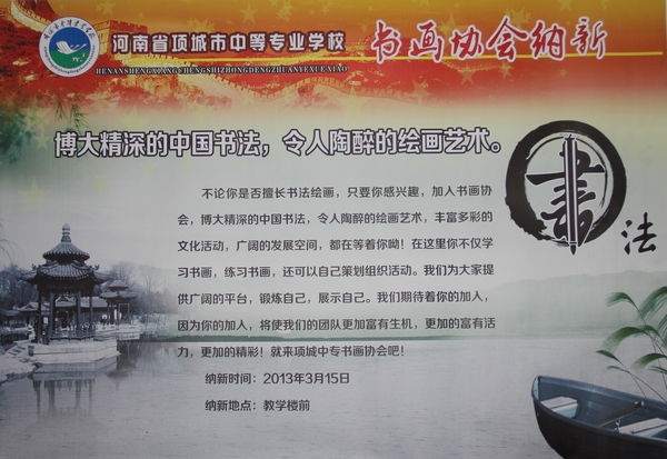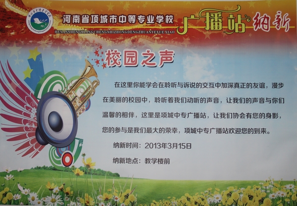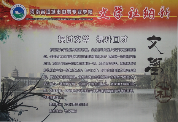 项城中专文学社、书画协会、音乐协会、广播站、国旗护卫队及校园礼仪队真诚邀请各位同学的加入!
