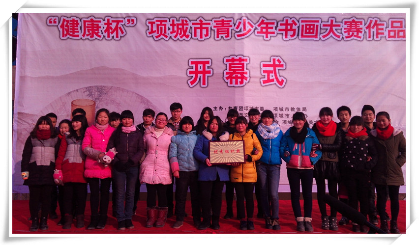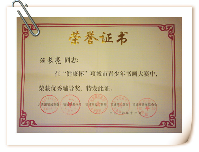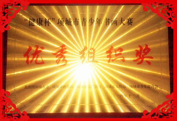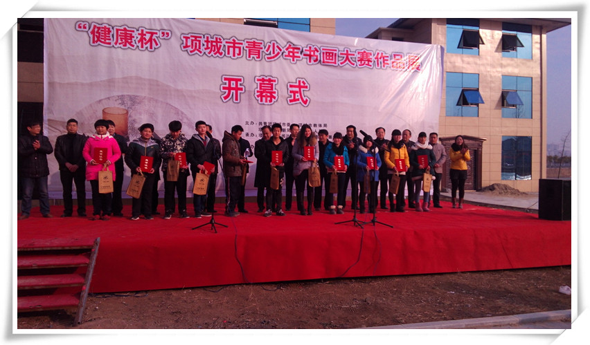 王养岭宣读《关于表彰“健康杯”项城市青少年书画大赛获奖作品的决定》;与会领导共同为获奖代表颁发了获奖证书。我校参赛作品26件,其中李瑞杰、王玉洁等6位教师获优秀辅导奖、15同学获奖,我校被评为优秀组织奖。