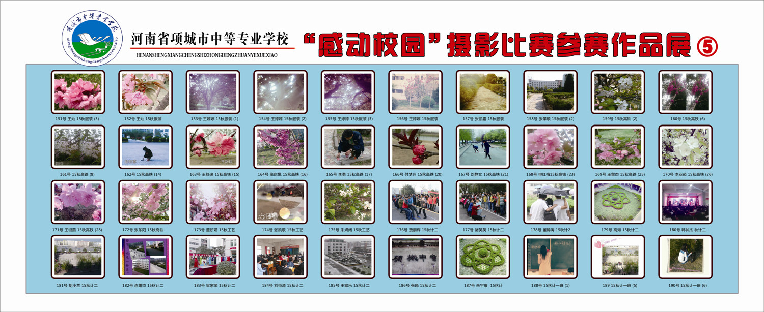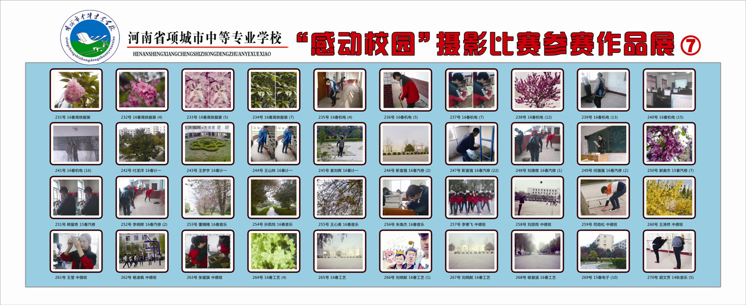 按照校团委工作计划,项城中专“感动校园”摄影比赛如期举办了,此次活动在高校长及校委会领导的大力推动下,各专业部积极参与了这次活动。作品征集工作现已结束,校团委共收到了来自27个班级的728张作品,除不符合参赛主题、网络下载、画面模糊、一稿多投、场景相似的,现将这些作品全部展示出来,请同学们欣赏这一幅幅感动的瞬间,并投出神圣的一票(投票方案另行通知)。