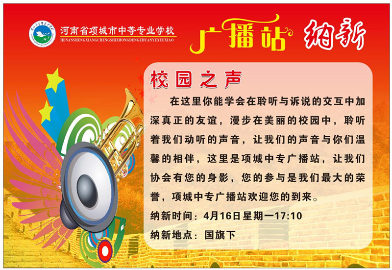 本次纳新的协会、社团包括:广播站、国旗护卫队、国学经典协会等10个社团。活动现场,协会的每一个成员都耐心细心地解答了前来咨询的每位新生的提问。通过交流,不仅使新生了解社团,使他们对自己的学校生活有了更深的规划。 在学校新的形势下,在校团委和各专业部的积极努力下,各个协会、社团一定能在项城中专这片沃土上茁壮成长,为我校的德育建设贡献出一份力量。