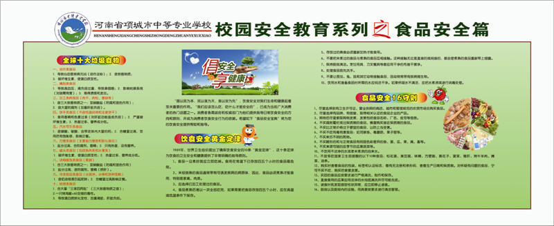 我校积极开展安全教育宣传工作,从1、交通安全教育,2、食品安全教育,3、消防安全教育,4、防溺水安全教育,5、环境保护教育,6、防校园欺凌安全教育,7、吸烟有害健康安全教育,8、疾病预防安全教育,八个方面对安全工作进行了细致的分析,制定出版面,以便于学生了解学生,从而提高安全意识,增强安全防患能力。