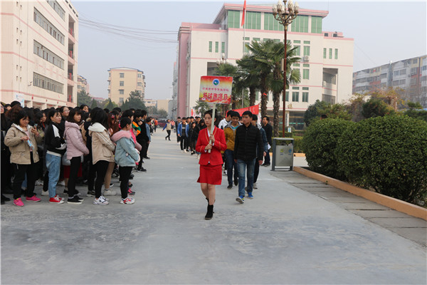 11月24日,我校2018年秋季运动会在国旗下举行了隆重开幕仪式。本届运动会在校团委、政教处以及体育组的认真筹划下,各专业部进行了积极认真的准备,所有班级参与了比赛,共派出了238多个参赛队700余名学生参与了踢毽子、拔河、乒乓球、羽毛球、三人篮球等7个项目的比赛。