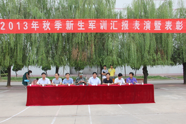 9月2日下午16:00时,我校2013年秋季新生军训汇报表演暨表彰大会在校篮球场举行。到会领导有:高校长,主管师训工作的王校长···