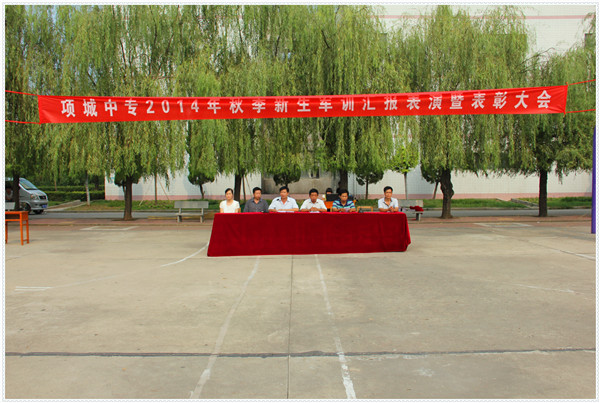 8月25日下午15:00时,我校2014年秋季新生军训汇报表演暨表彰大会在校篮球场举行。到会领导有:主管政教、团委工作的付校长,政教处张···