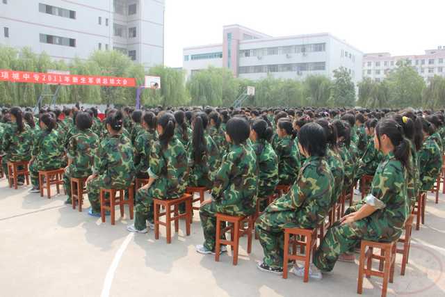 从8月17日,我校新生的军训正式开始,8月30日结束,为期14天。军训期间,同学们进行军事理论、军事技能等科目的学习和训练,举行国防教育、养成教育、安全教育等系列活动。培养学生高度的爱国主义精神、强烈的国防意识、坚强的意志和强将的体魄。军训是我校新生踏入中专生活的标志,在这期间他们所学的知识将会终身受用。