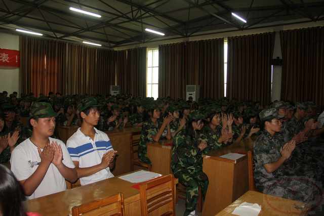 8月17日上午,项城中专五楼会议室,2011级全体新生统一着装,列队整齐,军训动员大会正在召开。学校领导高必兴、潘志刚、王云昭、张锦军、付高木、陈新峰等出席会议,全体承训教官和新生班主任参加会议。