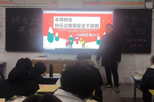 项城中专召开“快乐过寒假,安全不放假” 主题班会随着寒假的脚步临近,为了切实增强学生们的假期安全防范意识,让大家度过一个平安、欢乐的春节假期,项城中专各班级于1月···