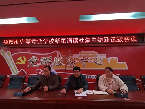 “新星诵读社”举行社团主持人选拔活动12月23日下午六点,项城中专“新星诵读社”在办公楼四楼会议室举行了社团主持人选拔活动。这次活动···