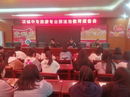 项城中专旅游专业部法制教育报告会为广泛深入开展法制教育和安全教育,提高学生的法律意识和安全意识,推进依法治校,创建平安校园,4月25日晚上,项城中专旅游专业部在办公···