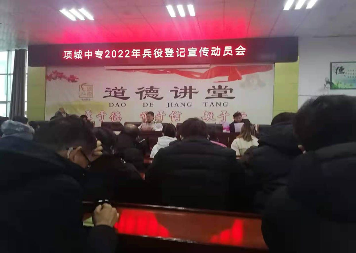 1月6日下午,项城中专举行了2022兵役登记宣传动员会,全体教职工参加,会上张成礼主任宣读了征兵政策,要求各班班主任认真研读,向班内同···