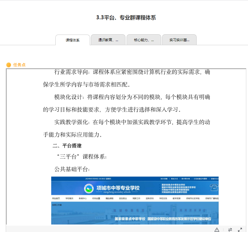 建立专业核心能力课程平台和专业拓展能力课程平台 一、专业核心能力课程平台1. 平台目标该平台旨在为学生提供计算机专业的核心知识和技能,确保学生掌握扎实的计算机专···