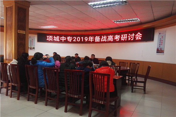 项城中专2019年备战高考研讨会,3月7日在办公楼二楼会议室召开。三年级全体任课教师参加了会议。会议由学···