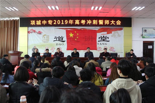2019年3月8日下午,项城中专三年级全体师生在五楼会议室举行2019年高考冲刺誓师大会。学校全体领导班子出···