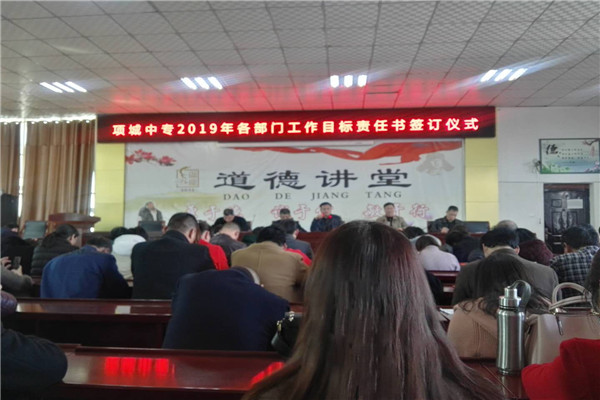 3月14日下午,项城中专在实训楼五楼会议室举行2019年各部门工作目标责任书签订仪式。校长刘福亚及各部门···