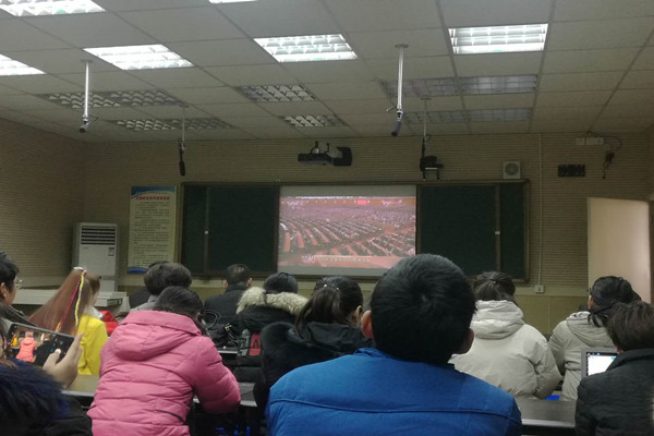 2018年12月18日上午9点40分,项城中专组织没课教师在三楼录播室观看改革开放四十年会议,中共中央总书记、国家主席、中央军委主席习近···