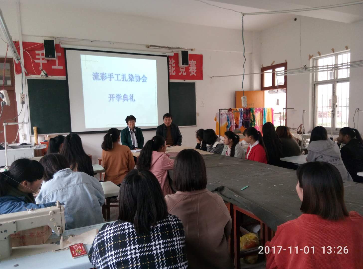 流彩手工扎染协会开学典礼 2017年11月1日中午,江南网页版流彩手工扎染协会在服装西工艺实习室举行开学典礼。 ···