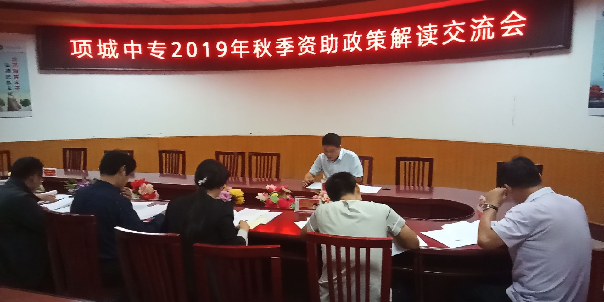 资助政策解读交流会2019年9月16日,项城中专资助中心在办公楼二楼会议室召开2019年秋季学期资助政策宣传解读会.与会人员有资助中心工作人···
